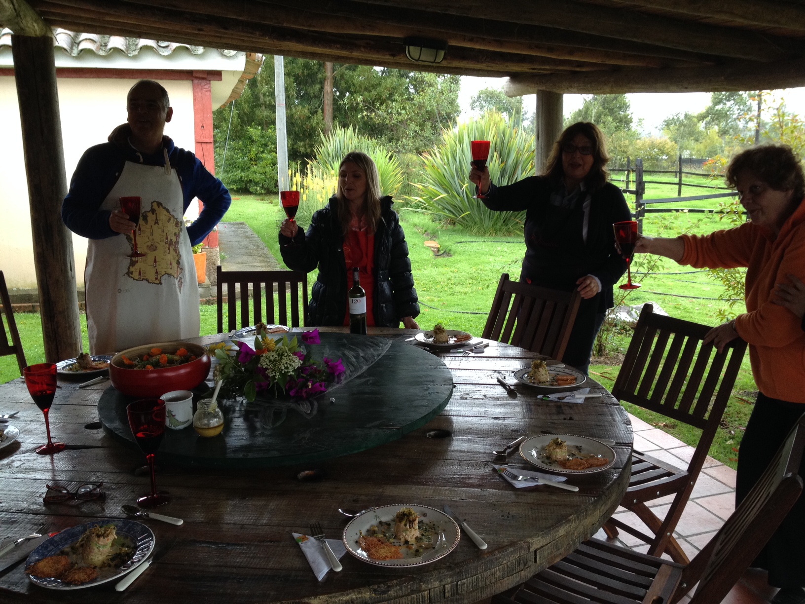 Preparados los salmones los dejamos marinando y salimos en carro, (estaba lloviendo bastante fuerte), para conocer el cultivo de hortalizas orgánico de ALFREDO ALVAREZ LEON y ALCIRA RIVAS DE ALVAREZ, tel 3002037285, E-mail:alverlon@hotmail.com, Web: http://www.alverlon.jimdo.com.