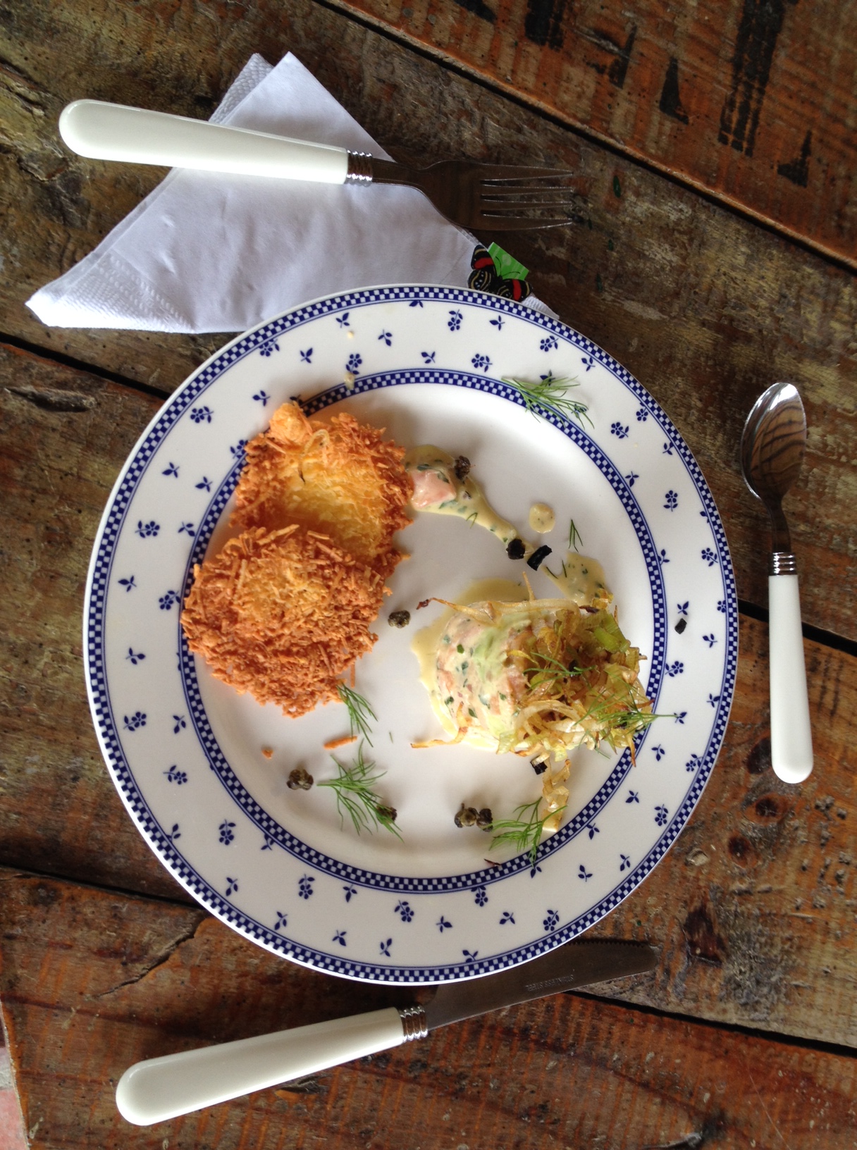 Decorada la mesa servimos la entrada. Un plato delicioso; las galletas de queso parmesano quedaron en un punto crocante aromatizadas por el olor de una cocina de leña.