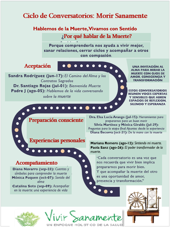 junio 30, 2025 gllinas CICLO: MORIR SANAMENTE – Programación Comparte esto: Compartir en X (Se abre en una ventana nueva) X Comparte en Facebook (Se abre en una ventana nueva) Facebook Me gusta Cargando... Relacionado